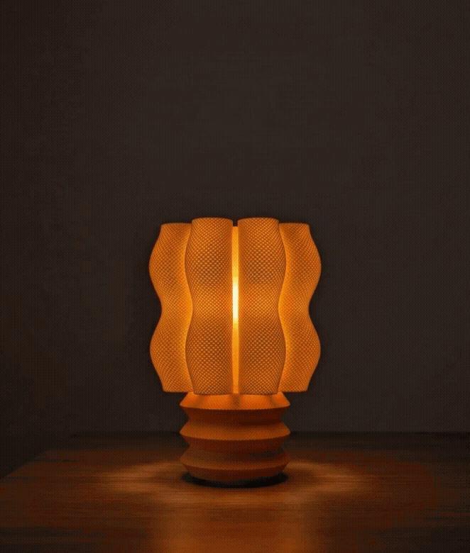 Abajur aktive edildiği anda, bal peteği dokusunun her bir gözenek hücresinden süzülen sıcak ışık, katmanlı gövde yapısını ve kaideyle olan renk kontrastını vurgular. Ürün kendi ekseni etrafında dönerken, ışığın gözenekli yüzeylerde yarattığı derinlik ve modern silüetin mekana kattığı seçkin parıltı her açıdan sergilenir.